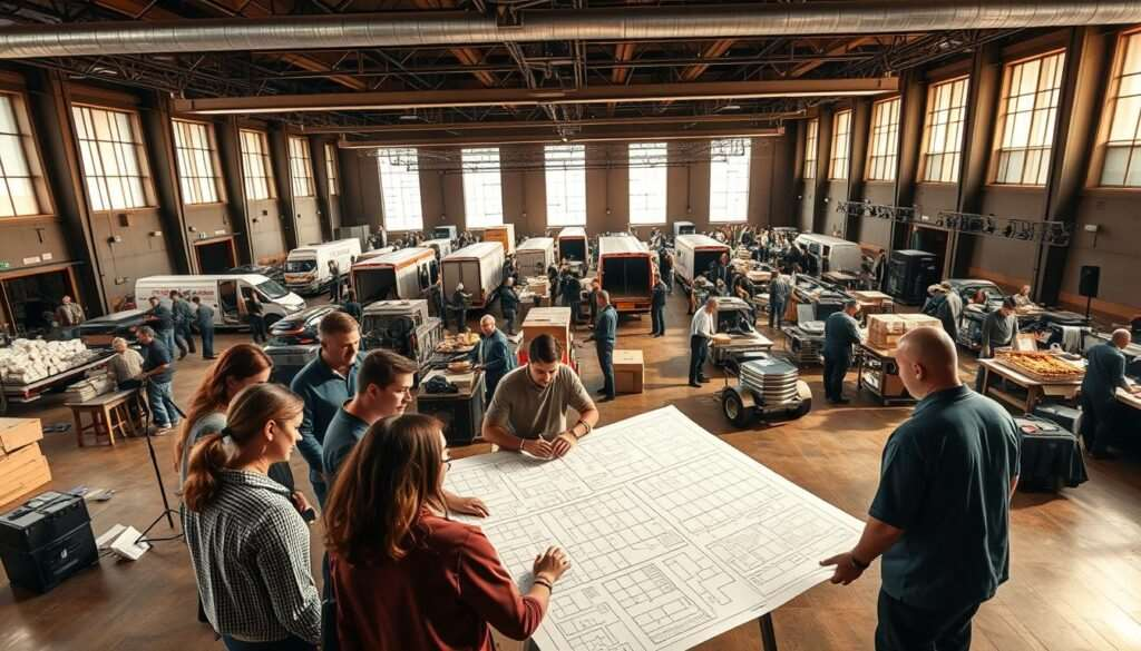 - Pengiriman Peralatan: Mengatur pengangkutan semua peralatan besar dan kecil dari gudang atau vendor ke lokasi acara, termasuk penjadwalan waktu bongkar-muat yang tepat untuk menghindari kemacetan di area loadingdock.